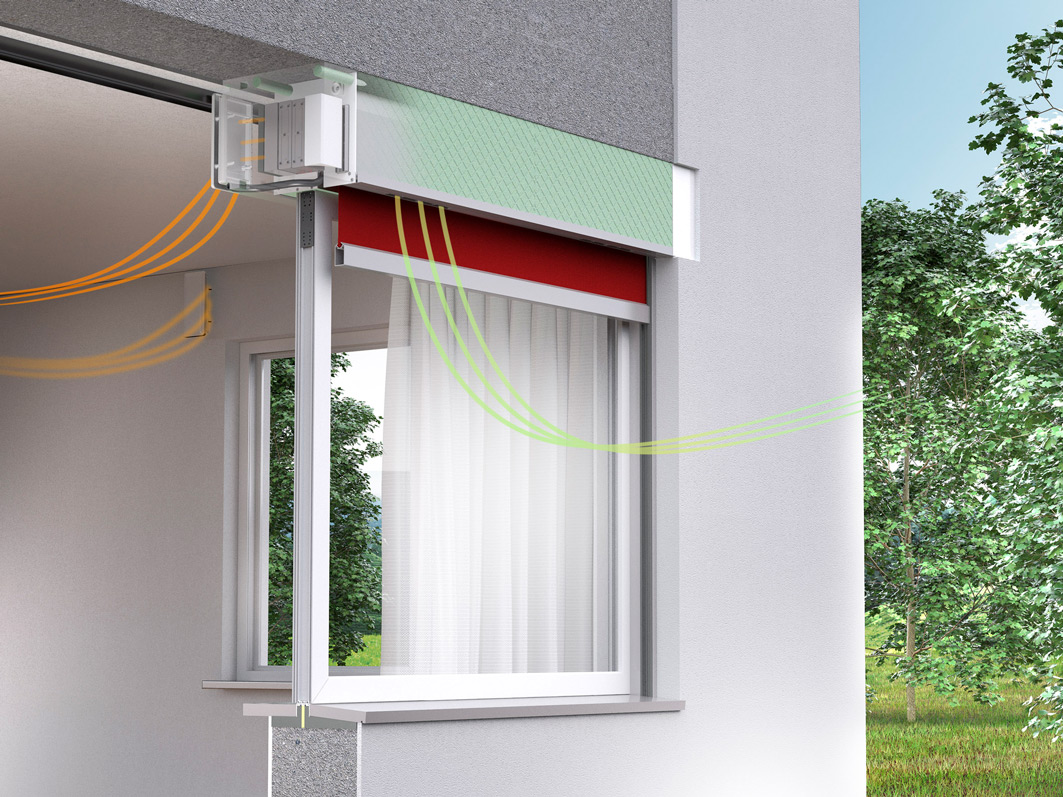 Der Beschattungskasten ROKA-TOP® 2 RG ZIP in Verbindung mit dem dezentralen Lüftungssystem AIRFOX® PLUS S/L macht Schluss mit Kompromissen: Von nahtloser Integration bis zur individuellen Stoffauswahl bietet die Kombination maximale Stabilität, witterungsbeständige Materialien und eine unauffällige dezentrale Lüftungslösung.